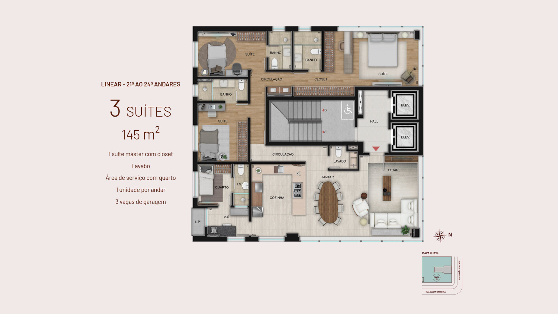 No Áster Lourdes, sua assinatura combina leveza, proporção e materiais nobres, resultando em uma arquitetura discreta, imponente e harmônica com o entorno. Os espaços foram pensados para oferecer amplitude, fluidez e sofisticação real no dia a dia.