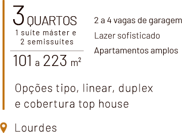 Uma torre única, com apenas 33 unidades, que se destaca pela volumetria contemporânea e integração ao entorno nobre de Lourdes.